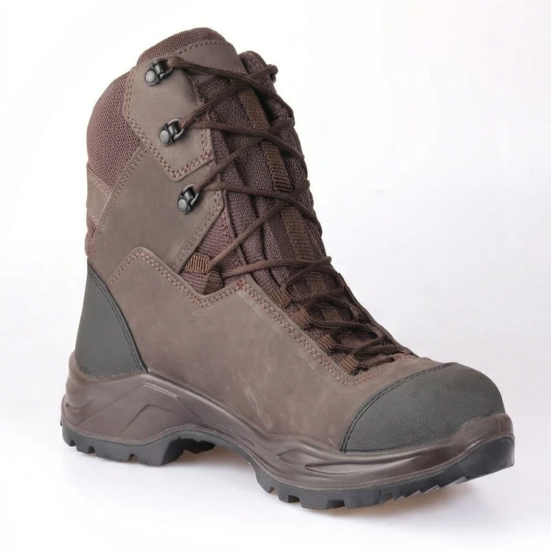 Берці Талан Х4348 Коричневі — зимове тактичне взуття з мембраною для роботи та служби в холодну пору року. Верх із міцного нубуку товщиною 2,0–2,2 мм у поєднанні з водовідштовхувальною тканиною Cordura забезпечує надійний захист від вологи та механічних пошкоджень. Гідрофобна дихаюча зимова мембрана та фольгована вкладна устілка зберігають тепло навіть при тривалому перебуванні на морозі. Антипрокольна основна устілка з неопреновою ізоляцією захищає стопу знизу, а термопластичний підносок із фольгою додатково утримує тепло в зоні пальців. Двошарова підошва ПУ-гума витримує інтенсивну експлуатацію — водонепроникність підтверджена випробуванням у 158 400 циклів.