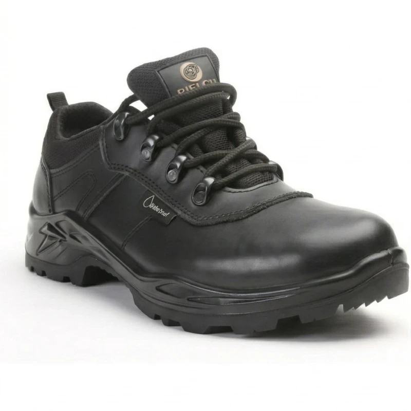 Напівчеревики Талан Х4363 — класичне робоче взуття із натуральної високоякісної шкіри для щоденної експлуатації у вологих та складних умовах. Водонепроникна підкладка WaterProof надійно захищає ногу від промокання, а каучукова підошва з агресивним протектором забезпечує впевнене зчеплення на мокрих і слизьких поверхнях. Міцна шкіра чорного кольору стійка до зносу та механічних пошкоджень, зберігаючи презентабельний вигляд протягом тривалого часу. Металева фурнітура підвищеної міцності гарантує надійну фіксацію шнурівки навіть при інтенсивному використанні.