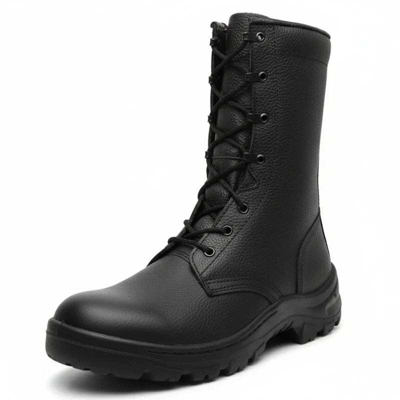 Берці 423 з хутром — практична зимова модель із натуральної шкіри з водовідштовхувальними властивостями. Утеплена підкладка зі штучного хутра забезпечує тепло та комфорт у холодну пору року, а легка поліуретанова підошва з амортизацією зменшує втому під час тривалого носіння. Міцна конструкція робить модель надійною для служби, охорони, військового використання та повсякденного носіння взимку.