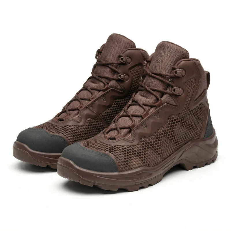 Черевики Талан 4435 коричневі — тактична модель нового зразка, розроблена для інтенсивного використання. Натуральна шкіра з водовідштовхувальними властивостями, термостійка гумова підошва з протектором і надійна фіксація гомілки забезпечують комфорт і стабільність у складних умовах.